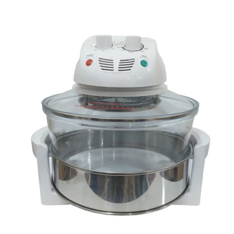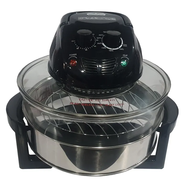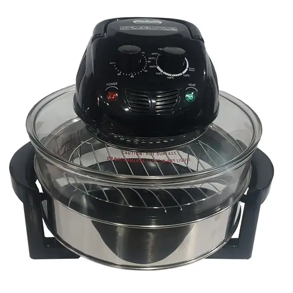 هواپز رومانتیک هوم مدل KP70، دیگه برای همیشه از شر روغن های شیمیایی خلاص میشید. این هواپز رومانتیک هوم KP70 دیگر نیازی به روغن ندارد و میتوان با آن انواع غذاهای سرخ کردنی که نیاز به روغن داشتن درست نمود. کارایی این دستگاه به گونه ای هست که پس از روشن شدن لامپ هالوژنی، باعث ایجاد حرارت میشود. هنگام روشن روشن لامپ هالوژن، فن داخلی هم شروع به کارکردن میکند که باعث گردش هوا داخل محفظه میشود و باعث گردش هوای یکنواخت میشود. این گردش هوا باعث میشود تا تمام مخلفات داخل محفشه به طور یک دست درست شوند. ظرفیت محفظه هواپز رومانتیک هوم مدل KP70 با حجم 12 لیتری بوده که برای یک خانواده پر جمعیت 8 نفره مناسب هست. کارایی این دستگاه با دو عدد کلید عقربه ای فرمان میگردد که یکی برای تنظین زمان پخت و دیگری برای تنظیم دما هست.