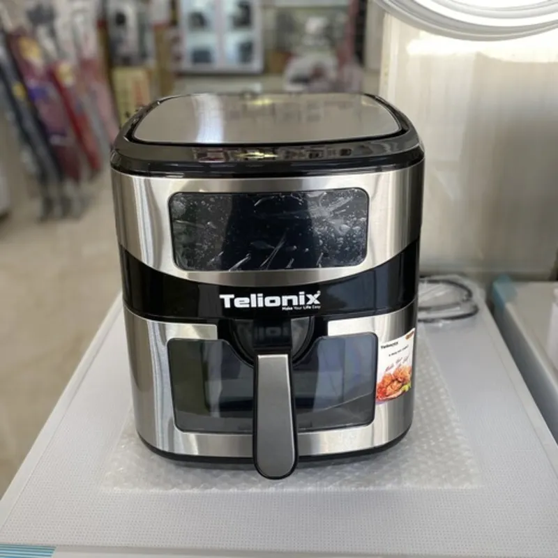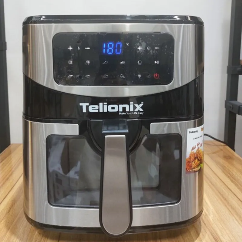 نقد و بررسی اجمالی سرخ کن بدون روغن تلیونیکس مدل TAF4408ادامه مطلبسرخ کن بدون روغن هوشمند TELIONIX مدل TAF4408 از محصولات شرکت نوظهور تیلونیکس میباشد.دفتر مرکزی شرکت تیلونیکس در دبی بوده و محصولات این برند در چین تولید میگردد.هدف شرکت تولید محصولات با کیفیت و طول عمر بالا و کمترین قیمت میباشد. این محصول دارای ظرفیت بالای 7.5 لیتر بوده که گزینه مناسبی برای خانواده های جمعیت متوسط میباشد. صفحه نمایش این محصول از نوع تمام لمسی هوشمند بوده و دارای نمایشگر دیجیتال میباشد. پنل هوشمند این محصول دارای 9 برنامه پخت پیش فرض بوده و قابلیت پخت انواع مرغ ، استیک ، سیب زمینی ،ماهی ، کاپ کیک و … را دارا میباشد. از ویژگی های متمایز کننده این سرخکن با بقیه محصولات دارا بودن پنجره بیرونی شفاف روبه روی سبد پخت میباشد که میتوان از روند پخت بدون نیاز به باز کردن دستگاه آگاه شد .همچنین درون دستگاه لامپ داخلی تعبیه شده که بهتر دیده شدن موادغذایی کمک میکند. بدنه داخلی و بیرونی این محصول از نوع استیل ضد زنگ کد 304 بوده و دارای طول عمر بالایی میباشد. به کمک تکنولوژی گردش هوای سریع 360 درجه محصول ، بدون نیاز به روغن میتوان به پخت کامل و مغزپخت انواع مواد غذایی پرداخت و تا 80 درصد در مصرف روغن صرفه جویی نمود. همچنین امکان تغییر دمای محصول از 50 الی 200 درجه و تایمر قابل تنظیم تا 60 دقیقه نیز وجود دارد . توان مصرفی این محصول نیز 1600 الی 1800 وات بوده که توان مناسبی برای سرخکن های خانگی میباشد
