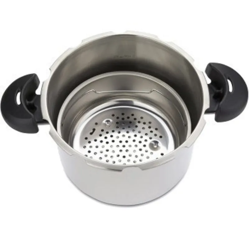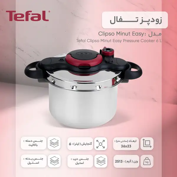نقد و بررسی اجمالی زودپز کلیپسی تفال فرانسه مدل ایزی 6لیترادامه مطلبمشخصات زودپز تفال مدل Clipso Minut Easy با ظرفیت 6 لیترعدم وجود قابلیت های ایمنی در زودپز های قدیمی باعث شده است بسیاری از کدبانوهای خانه دار سراغ سایر روش ها و ظروف دیگر برای پخت و پز سریع مواد غذایی بروند.زودپز تفال مدل کلیپسو مینت ایزی Clipso Minut Easy اما یکی از محصولات شرکت تفال فرانسه است که با داشتن بالاترین استانداردهای ساخت و ایمنی خیال شما را از نظر داشتن یک زودپز عالی راحت می کند.این زودپز در ظرفیت های مختلف متناسب با نیاز کاربران تولید شده است.زودپز تفال کلیپسو مینت 6 لیتر می تواند برای پخت غذای تا 12 نفر نیز مناسب باشد و برای یک خانواده پر جمعیت نیز می تواند کاربرد داشته باشد.این محصول از جنس استیل با ضخامت مناسب و کاملا ضد زنگ ساخته شده است و در نتیجه می تواند بالاترین سطح ایمنی را در هنگام استفاده برای شما به همراه داشته باشد.اما قسمت زیرین یا اصطلاحا کفه این زودپز 6 لیتر تفال دارای ضخامتی بیشتر از بدنه است و دارای قابلیت انتقال سریع حرارت است.دسته ها نیز از جنس با کالیت ساخته شده اند تا با توجه به عایق بودن بتوانید به راحتی از انها برای جابجایی زودپز استفاده کنید.اما زودپز تفال ساخت فرانسه مدل کلیپسو مینت ایزی دارای یک ظرف از جنس استیل ، مخصوص بخار پز کردن مواد غذایی و سبزیجات است.در هر صورت اگر شما هم این روزها به دنبال خرید زودپز هستید ما این محصول را به شما پیشنهاد می کنیم.تفال (Tefal) فرانسه از بزرگ ترین تولید کننده های لوازم خانگی در سراسر جهان است که دارای سال های سابقه درخشان در این زمینه است.ساده ترین سیستم باز و بسته کردن درب در زودپز 6 لیتر تفال Clipso Minut Easyبا کمک سیستم باز و بسته کردن درب که در این مدل از زودپز های ساخت شرکت تفال فرانسه در نظر گرفته شده است شما ساده ترین روش را برای باز و بسته کردن درب ان در پیش رو خواهید داشت.این زود پز را می تواند فقط یا یک دست و بالا و یا پایین اوردن دسته مرکزی ان به راحتی باز و یا بسته کنید.کنترل سه مرحله سوپاپ تخلیه در زود پز تفال فرانسه مدل Clipso Minut Easyمتناسب با نوع مواد غذایی که شما برای پخت در نظر دارید می توانید خروجی سوپاپ تخلیه بخار را در سه مرحله تنظیم کنید.مرحله اول برای پخت گوشت ، حبوبات و یا به طور کلی زودپز کردن ، مرحله دوم برای بخارپز کردن و مرحله اخر نیز برای تخلیه کامل بخار پس از اتام پخت است.ویژه گی های زودپز استیل تفال مدل Clipso Minut Easyظرفیت 6 لیتر مناسب برای خانواده های پرجمعیت دارای بودن بالاترین سطح استانداردهای ایمنی بدنه ساخته شده از استیل بسیار با کیفیت و مقاوم در برابر زنگ زده گی دسته های ضد حرارت و عایق از جنس باکالیت باز و بسته کردن بسیار راحت و سریع درب با کمک دسته مرکزی داشتن قابلیت قفل شونده خودکار درب پس از قرار گیری بر روی حرارت سوپاپ قابل تنظیم در سه حالت تخلیه کامل ، پخت گوشت و پخت سبزجات دارای سبد استیل مخصوص بخارپز کردن انواع مواد غذایی کفه چند لایه و مناسب برای قرار گیری بر روی اجاق های القایی ، سرامیکی ، هالوژنی و ...