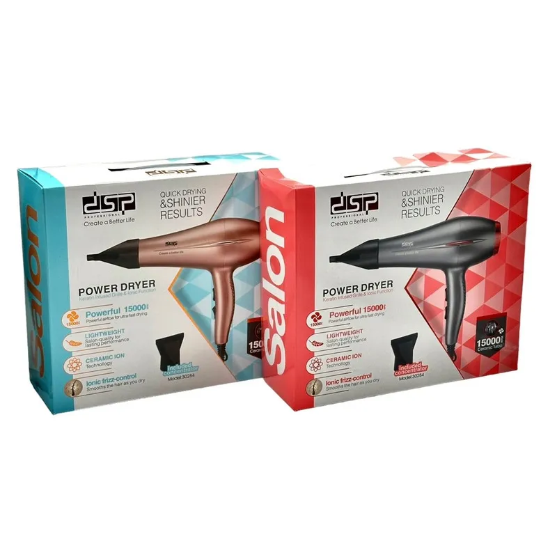 مشخصات فنی سشوار حرفه ای دی اس پی مدل 30284ویژگی های جدیدبرنددی اس پی(DSP )مدل30284توان1800 واتنوع موتورACتعداد سری2 عددتعداد سرعت2 سرعته