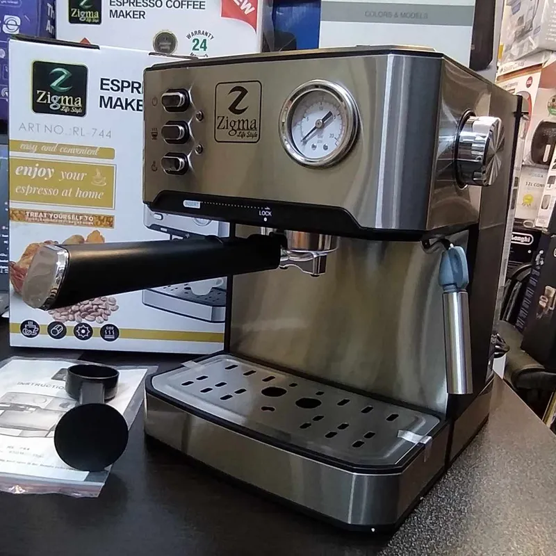 مشخصات فنی اسپرسوساز زیگما ZIGMA مدل 744ویژگی های جدیدمدل744برندزیگما(ZIGMA )توان850 واتقدرت بخار20 بارقابلیت تولید کف شیرداردقابلیت تنظیم میزان بخارداردنوشیدنی های قابل تهیهاسپرسو , کاپوچینو قهوه و ....قابلیت استفاده ازپودر قهوهتمپر قهوهداردسینی چکه گیرداردسیستم خاموشی خودکارداردحجم مخزن آب1.8 لیتر