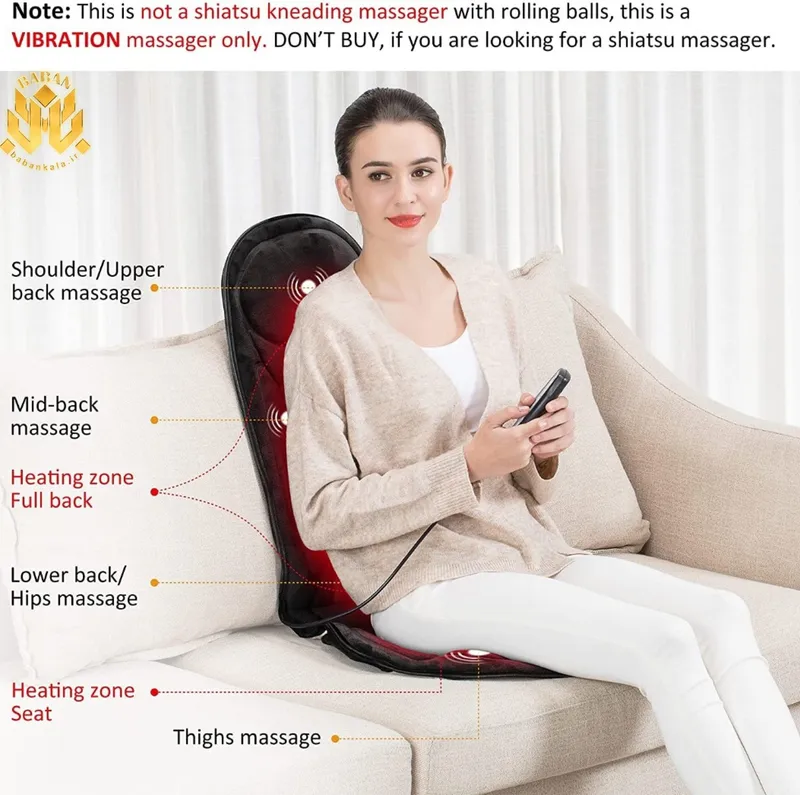 باعث کاهش درد و گرفتگی عضلات و رفع خستگی و آرامش بدن باعث افزایش گردش خون در بدن دارای کنترل ، سبک و حمل راحت قابل استفاده بر روی صندلی ماشین ، منزل و محل کار با قابلیت ماساژ کمر ، گردن، شانه و ران و نشیمنگاه دارای 5 موتور دارای قابلیت حرارت دارای چندین برنامه ماساژ از جمله ماساژ به صورت شیاتسو دارای آداپتور و رابط فندکی ماشین جهت استفاده در ماشین دارای کنترل بسیار سبک و قابل حمل.قابل استفاده برای ماشین و منزل.این ماساژور صندلی ویبره-حرارتیکه توانایی تنظیم دستی و خودکار را دارد.دارای آداپتور برق برای اتصال به ماشین