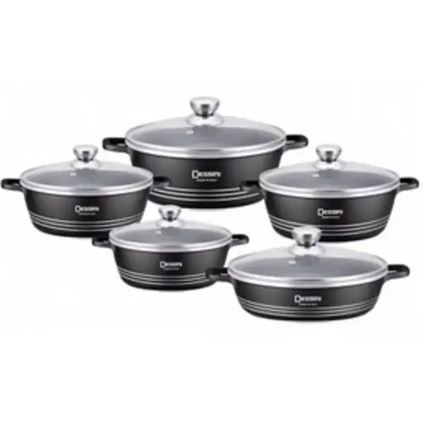سرویس قابلمه چدن دسینی 10 پارچه مارکDessini رنگ:مشکیشناسه کالا: 42584