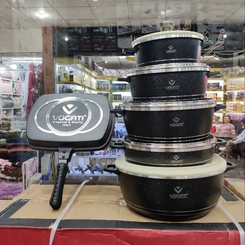 مشخصات فنی سرویس قابلمه وگاتی مدل 12 پارچهویژگی های جدیدبرندووگاتیروکشگرانیتتعداد قابلمه و تابهسایز بندی : 20_ 24 _ 28 _ 28 _ 32 _ 36سایز تابه رژیمی32ابعاد تابه24ابعاد قابلمه